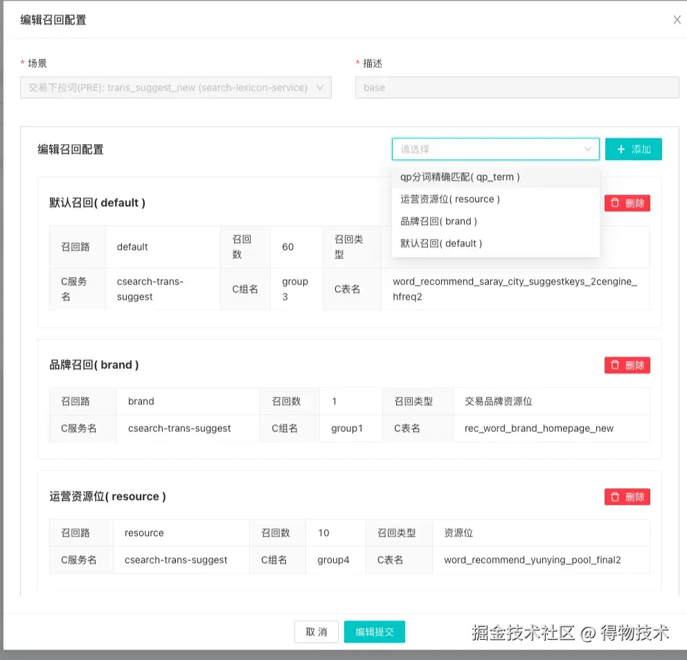 在以前的词分发系统中,多路召回的配置是以JSON字符串的形式存在的。每次修改配置都需要对这个JSON进行手动的编辑,该过程非常耗费时间,随着召回路的增多,配置效率也会越来越低,而且这种方式容易出错。因此,我们需要一种更加高效、可视化的方法来管理和配置多路召回。