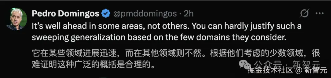 威斯康星大学计算机科学教授 Pedro Domingos 就质疑了这种概括性结论: