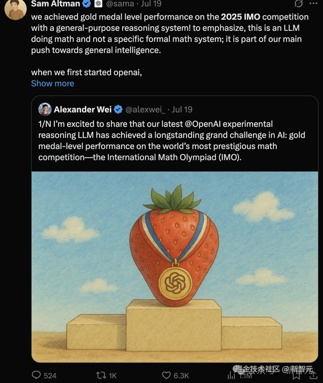 之后,不久传来了 AI 获得金牌的消息。