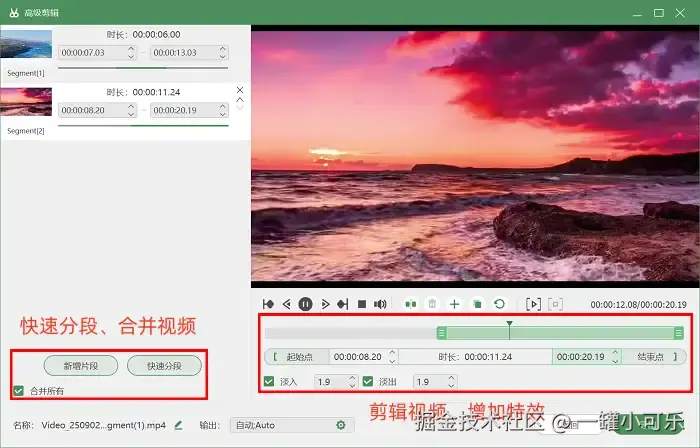 第3步:当需要结束录制时,点击停止图标,软件会自动切换到预览界面。此时可以拖动进度条查看是否有遗漏的内容,如果你有需要裁剪掉的片段,可以选择 “高级剪辑” 选项进行相应的剪辑操作。