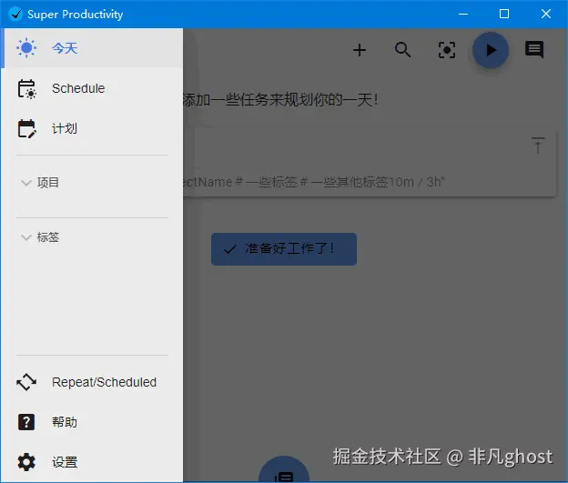 - 安装完成后,启动Super Productivity,进入主界面。