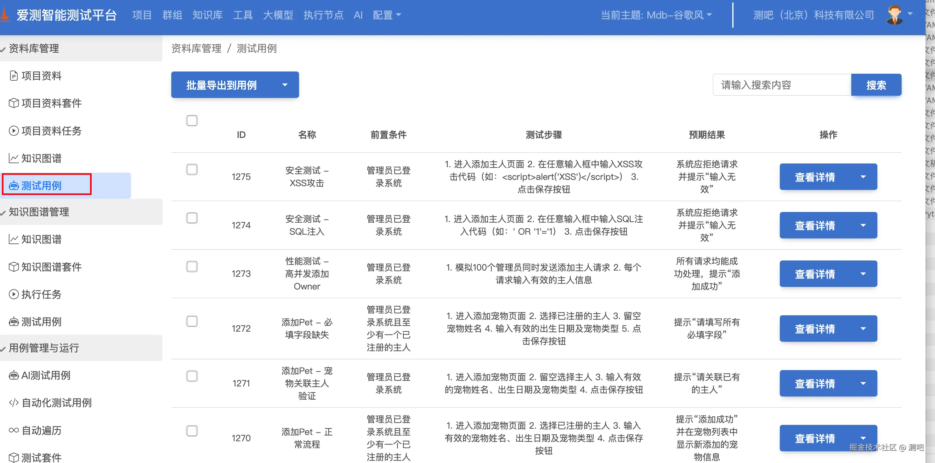 - 查看详情(前置条件 / 步骤 / 预期等);