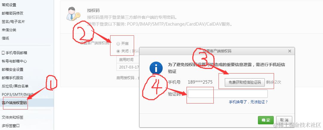 #在邮箱中设置的客户端授权