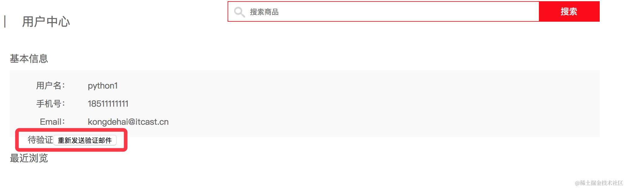 为了避免用户未收到验证邮箱, 提供“重新发送验证邮件”按钮允许用户重新发送邮件。