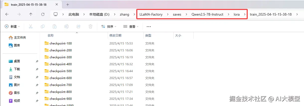 模型训练好后,会保存至 LLaMA-Factory 的 saves 文件夹中。