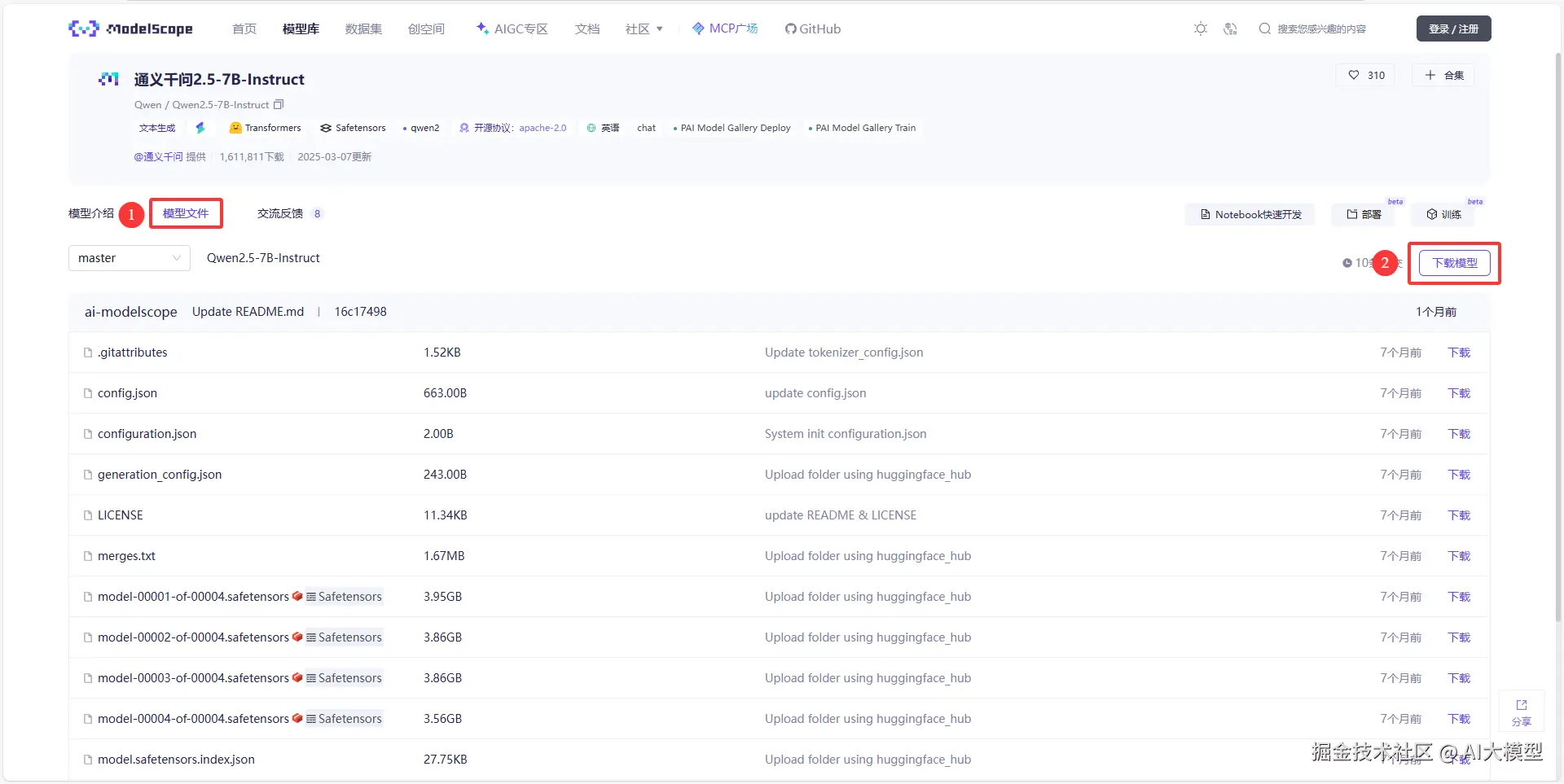 git clone https://www.modelscope.cn/Qwen/Qwen2.5-7B-Instruct.git # Qwen2.5:7B 模型