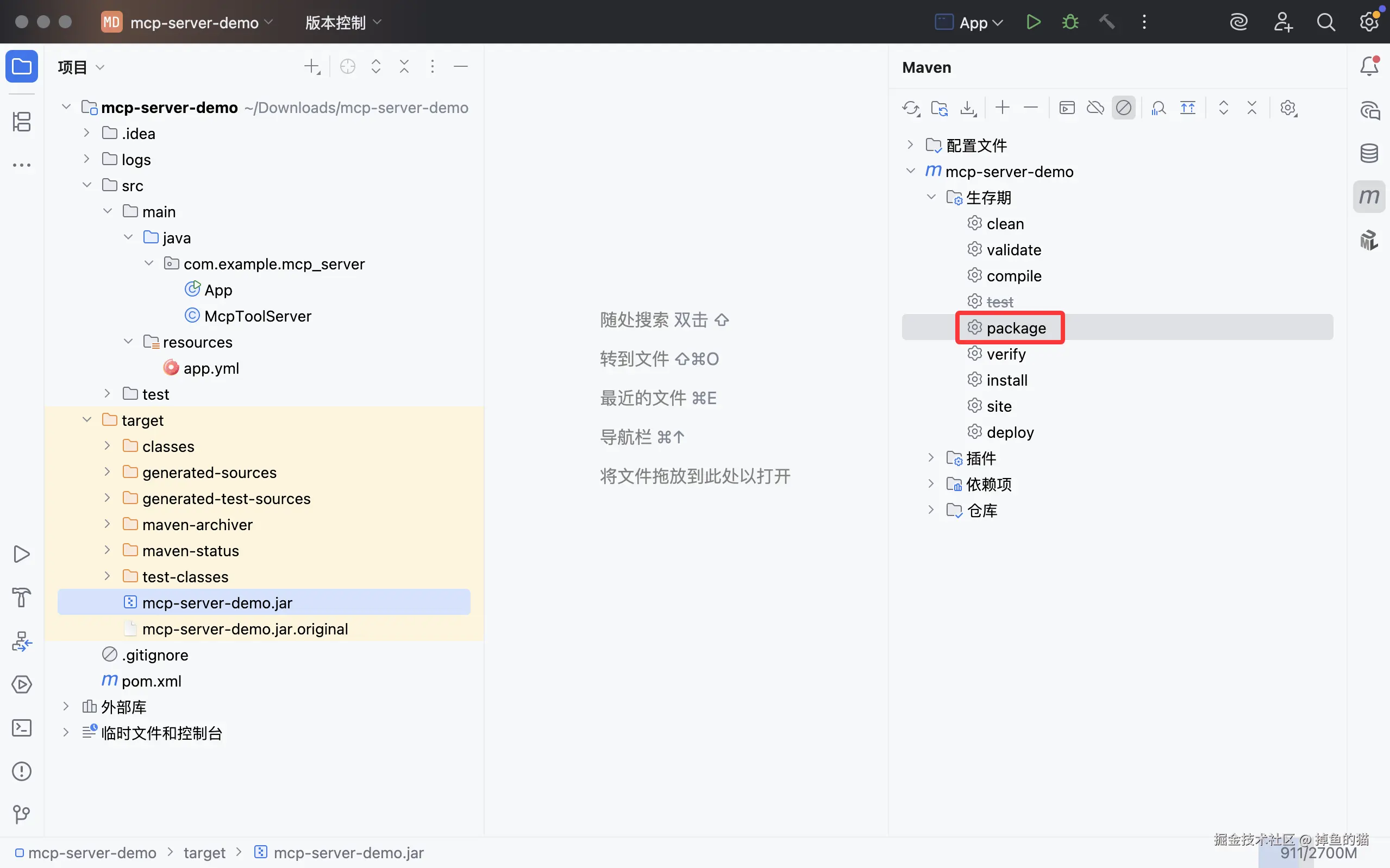 打包,并生成 mcp-server-demo.jar
