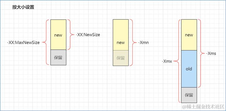 - -Xmn 设置新生代大小,相当于同时设置了 -XX:NewSize 与 -XX:MaxNewSize 并且取值相等