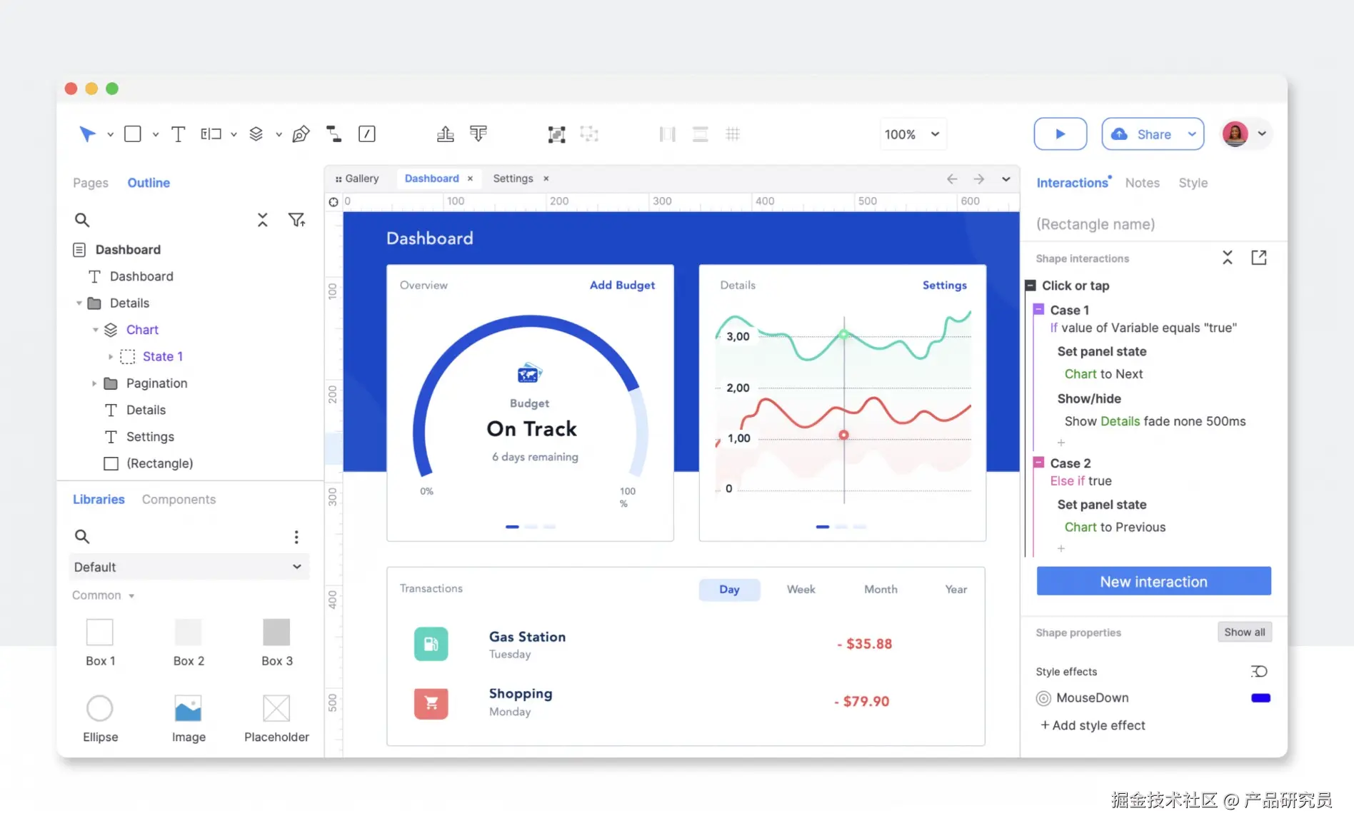 由此看来,在交互能力的对比上Axure更占优势一些,墨刀的交互能力也比较均衡,能覆盖多数复杂交互需求,而Figma就相对简单一些了,偏向简化场景。