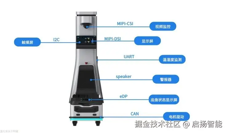 启扬RK3576核心板集成八核高性能处理器和高算力NPU,提供足够的性能保障,智能巡检机器人能够快速准确的处理各种复杂的巡检任务,实现智能化的环境感知,目标识别和决策控制;丰富的接口资源,可灵活接入应用所需的硬件模块,快速部署设备所需的功能。