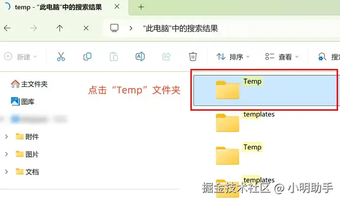 步骤1: 在“此电脑”中搜索“Temp”文件,耐心等待电脑文件的搜索;