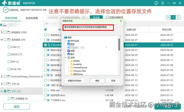 步骤3: 最后别忘了在小弹窗中选择文件合适的存放位置,除了原位置之外都可以。