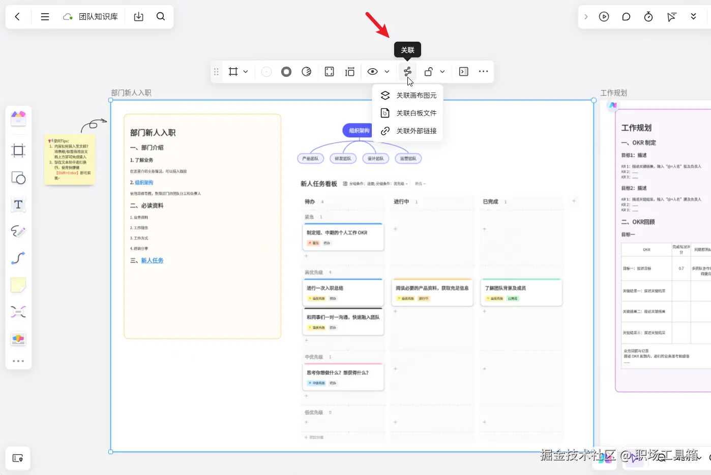 例如,你可以在项目总结报告中,引用相关的会议纪要白板;在产品需求文档中,链接到对应的用户画像和竞品分析白板。这种网状的连接方式,打破了传统树状结构的限制,让成员可以根据自己的兴趣和需求,在知识库中自由“漫游”,从而发现更多潜在的联系,激发更多的创新灵感。