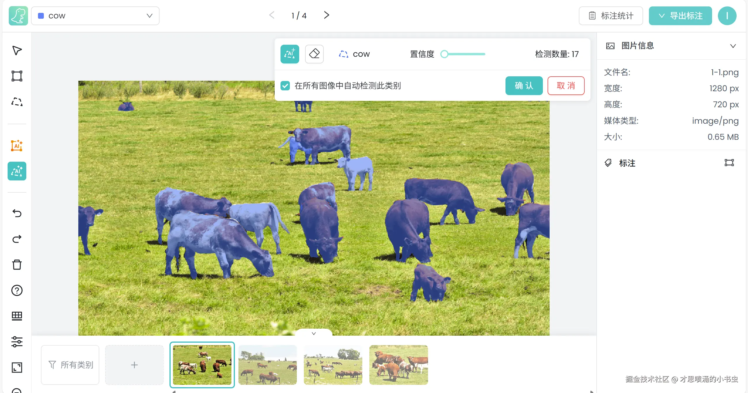 然后平台会自动标注当前图片中所有的目标,给出标注的目标数量,并等待确认: