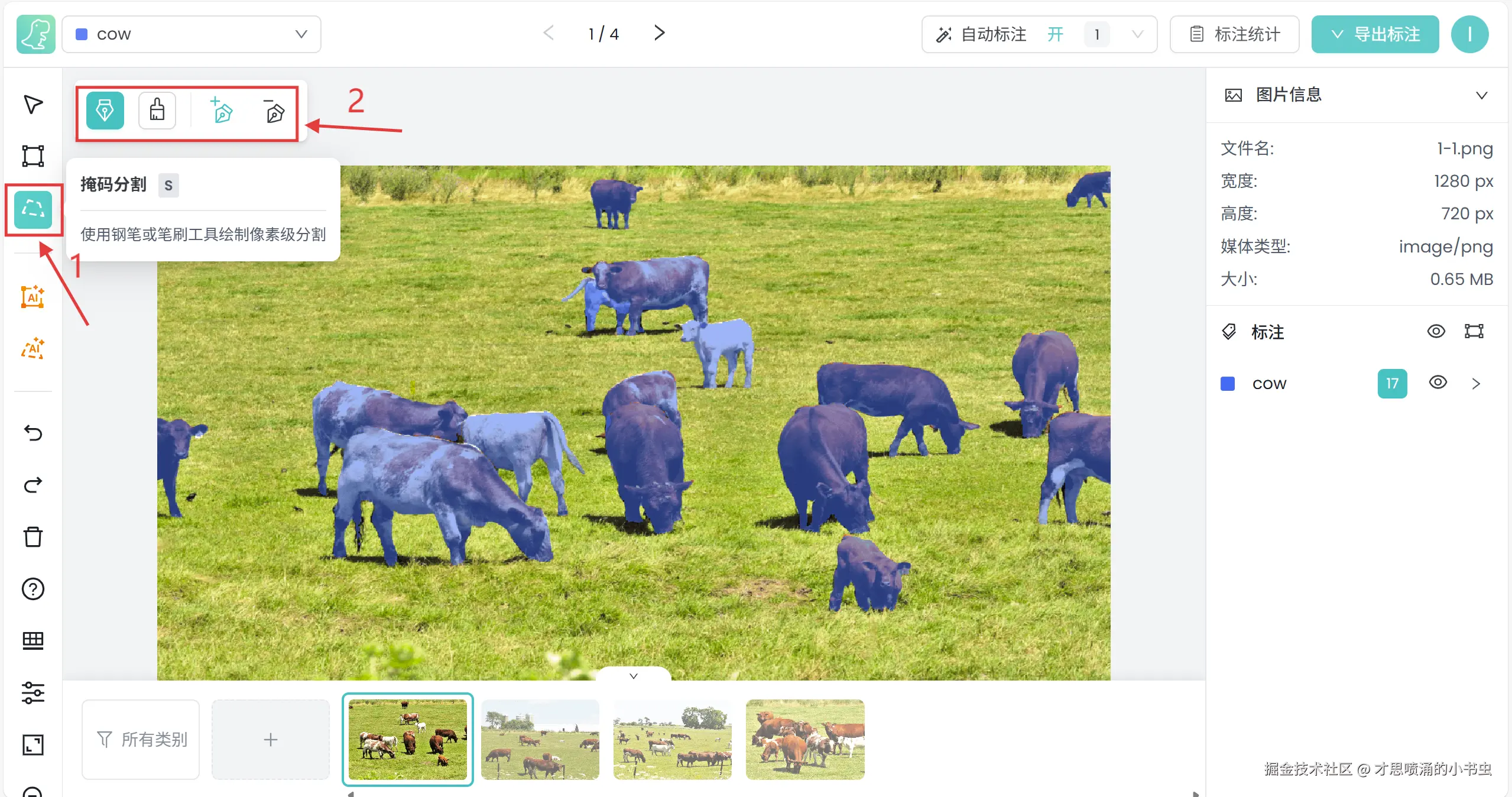 (1)交互式标注包含手动标注以及跨图自动标注,即用户选定一个或多个对象以后,AI 会自动标注所有目标,后续用户无需重复选定目标对象,但需要通过切图的形式触发自动标注;