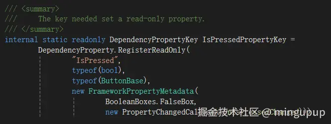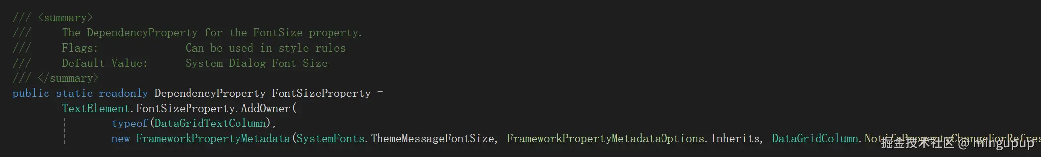 要想更好地理解依赖属性的概念,一个很好的方式就是去看WPF的源码,看看在源码中是如何使用的,现在就让我们一起去源码中找找看吧!!