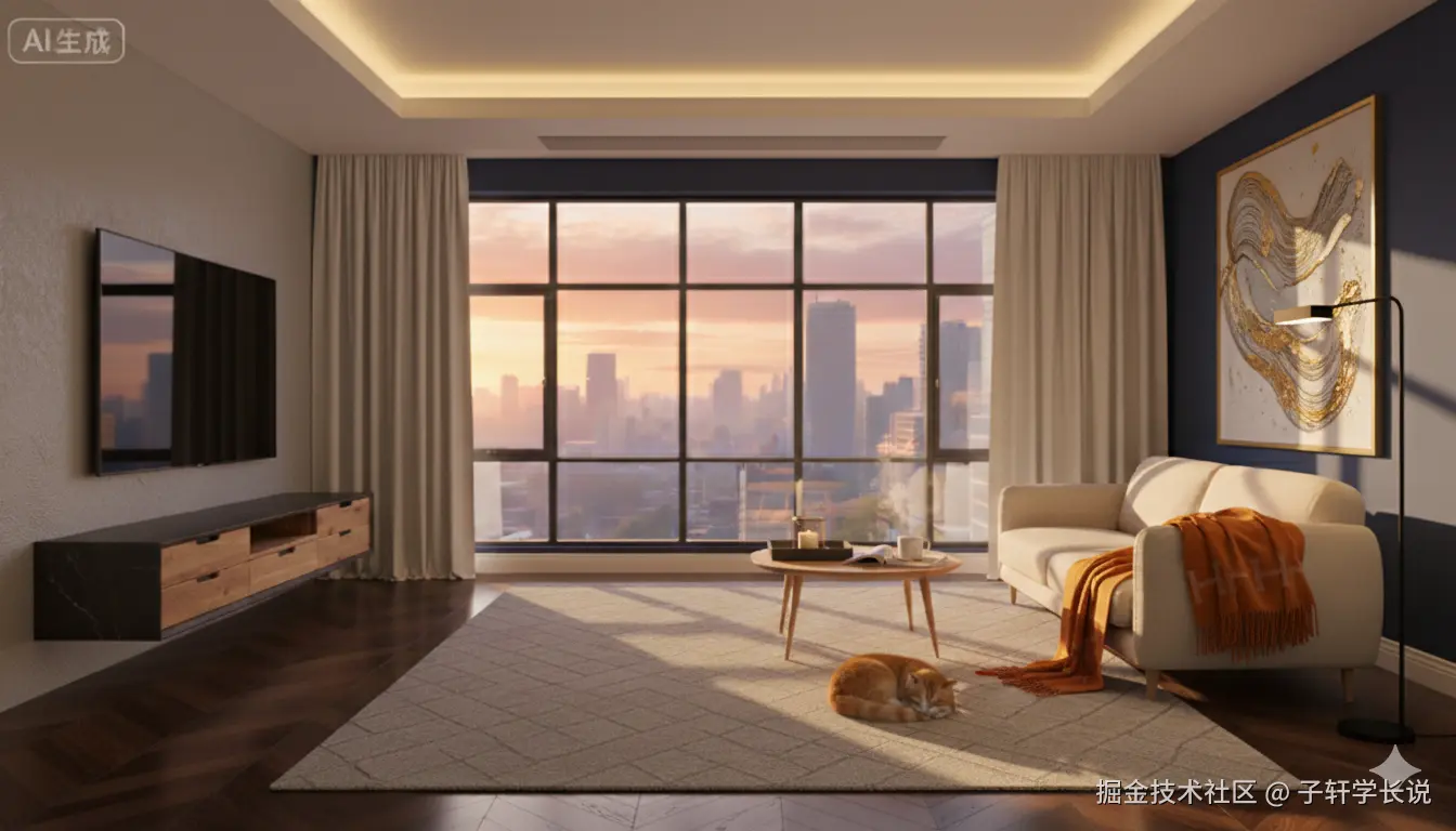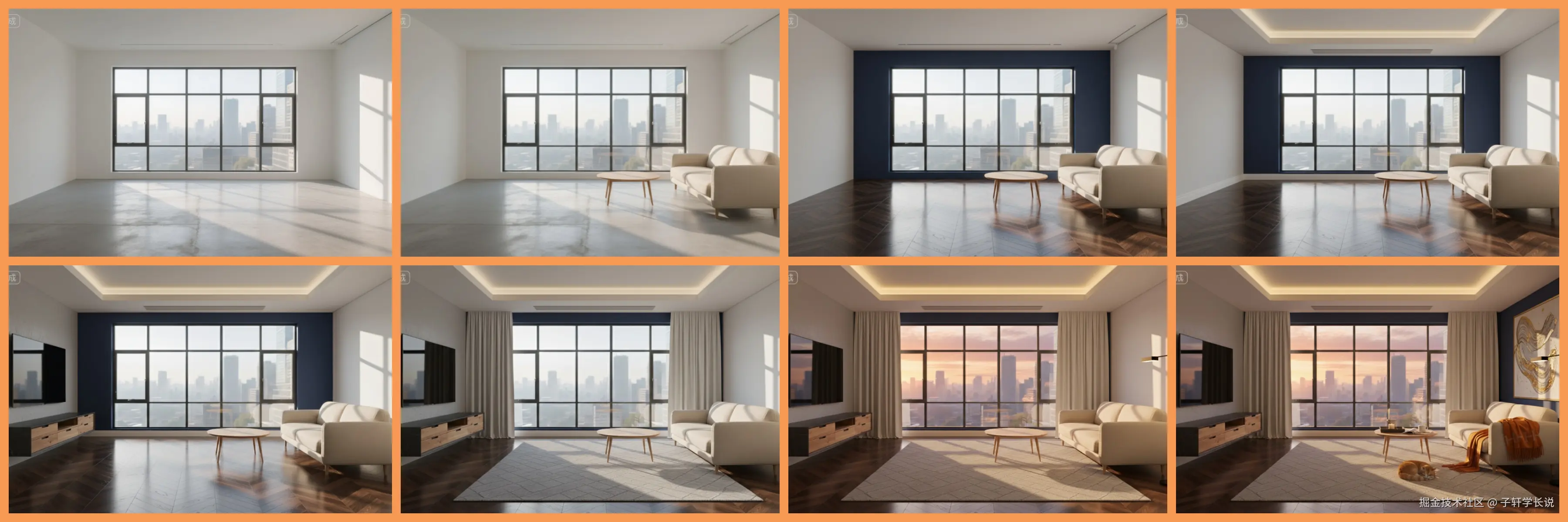 生图又可以搞出一个新玩法,就是全套的家居设计,先看效果,从一个毛坯房开始,一点点的根据你自己的需要进行装修,整个过程有点像拍摄那种装修前后对比的vlog视频的感觉。