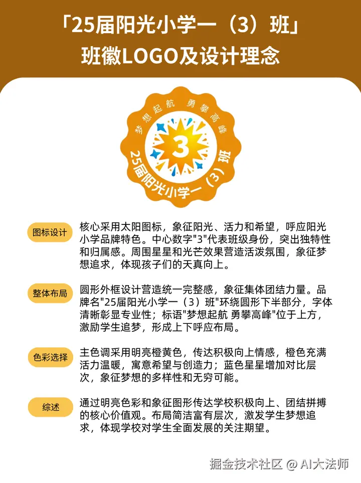 6、「25届阳光小学一年级(3)班」班徽Logo及设计理念