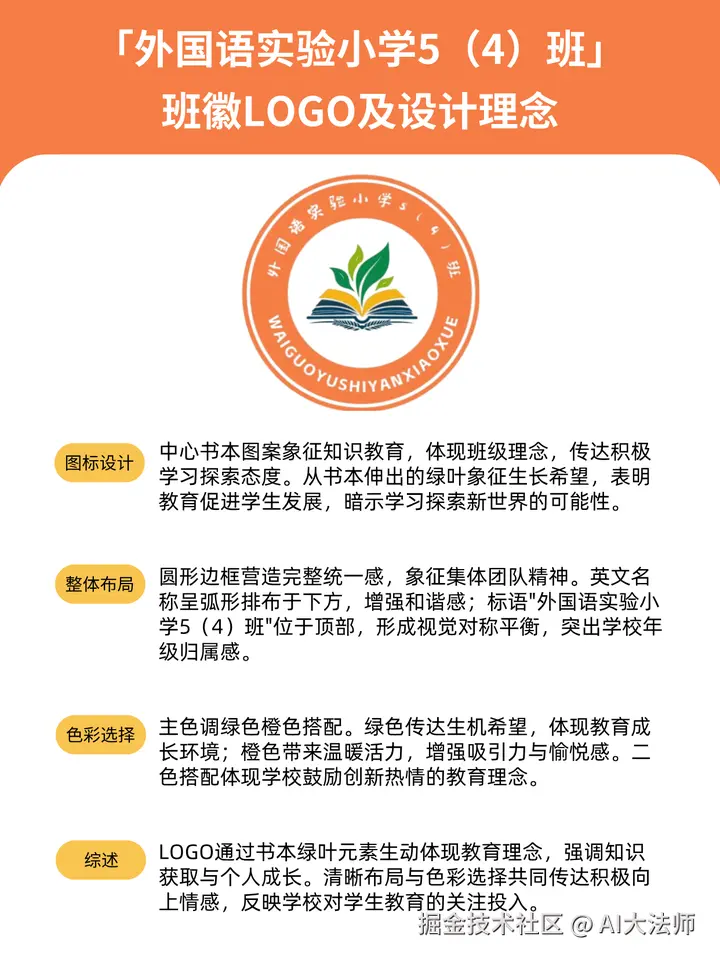 11、「外国语实验小学5(4)班」班徽Logo及设计理念