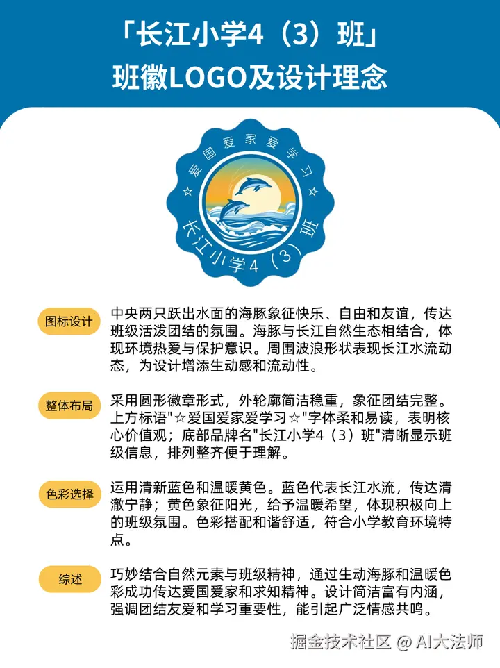 8、「长江小学4(3)班」班徽Logo及设计理念