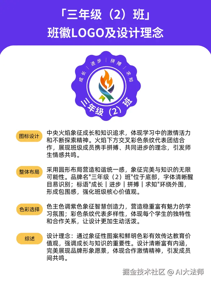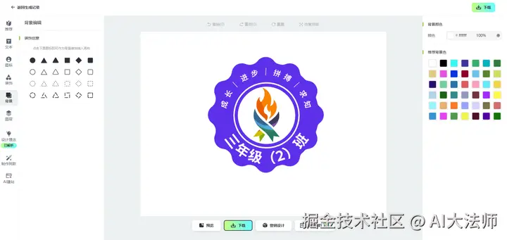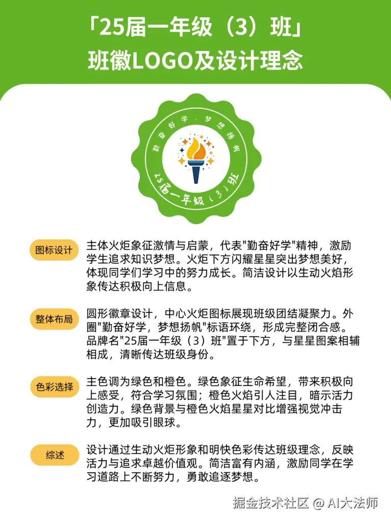 如果对AI生成的班徽不满意,我们也可以更换不同的AI工具进行尝试生成,也可以优化我们的班徽提示词,让AI生成的班徽更符合我们的需求和标准。