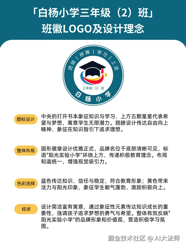 10、「白杨小学三年级(2)班」班徽Logo及设计理念