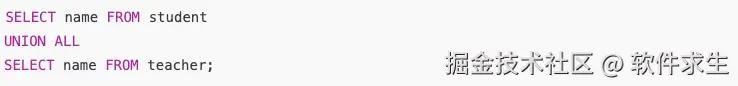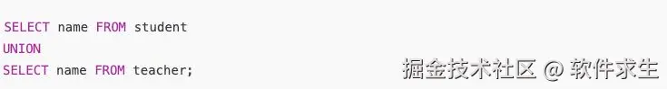 它的作用很简单:把两个结果集合并成一个集合,并且自动去重。所以结果集中不会出现重复的name。
