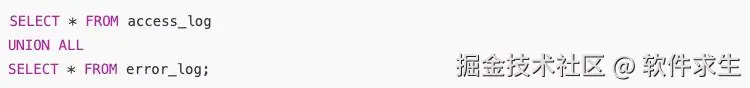 如果你在处理日志数据,比如access_log和error_log,你只是想把这两份日志结果合并到一起分析,重复的数据无所谓。这时候就应该用UNION ALL: