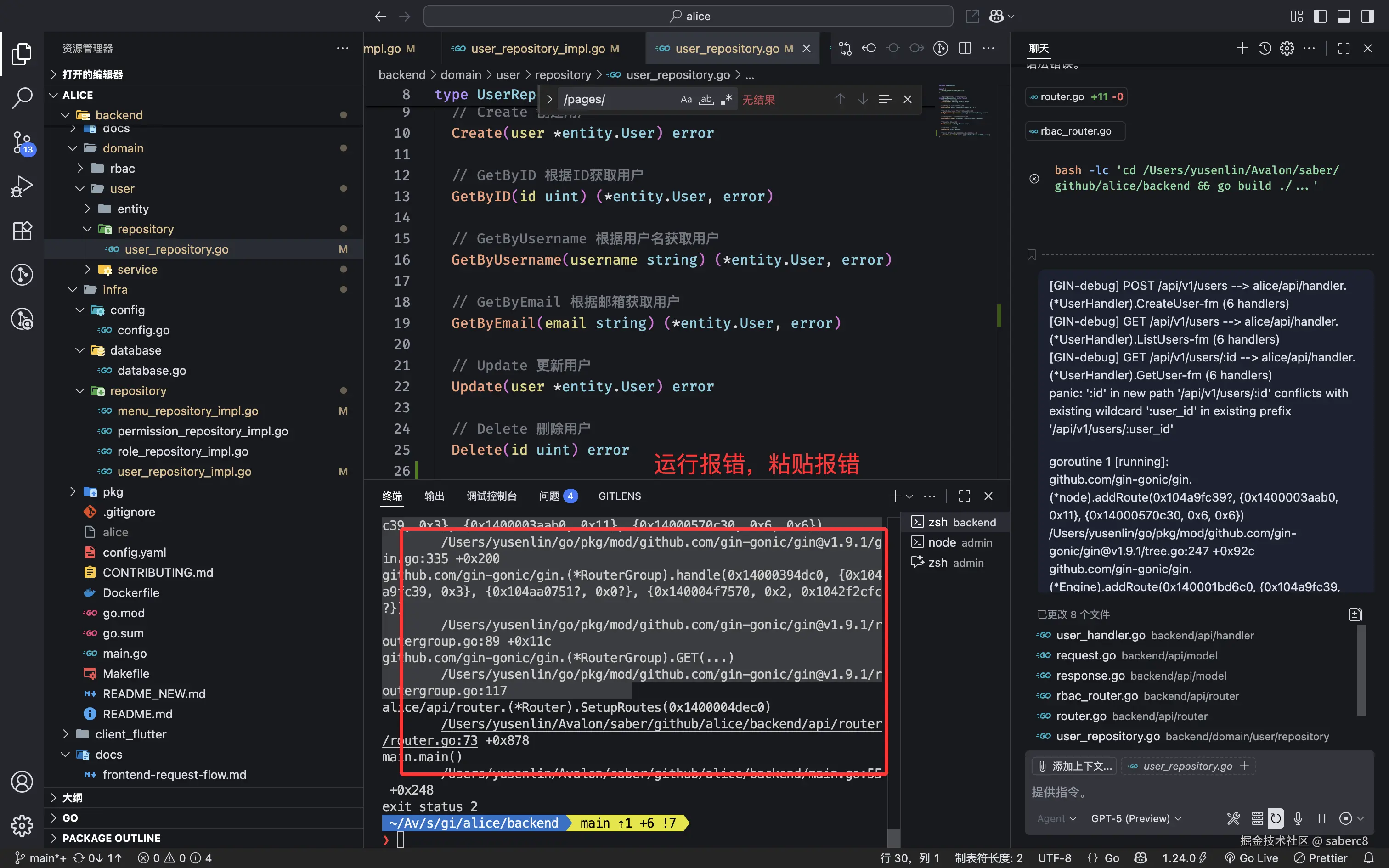 [GIN-debug] GET /api/v1/users/:id --> alice/api/handler.(*UserHandler).GetUser-fm (6 handlers)