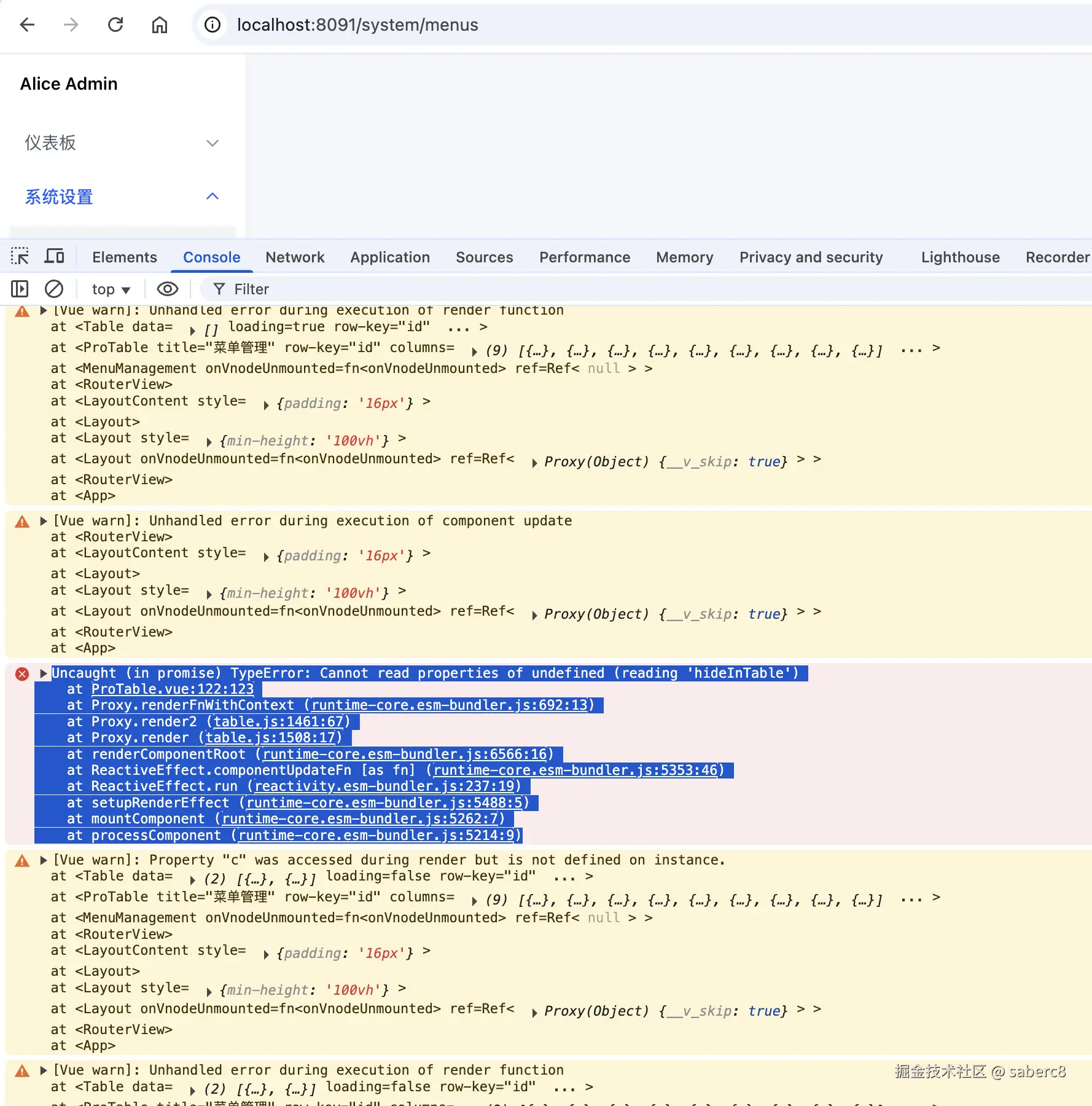 [ProTable.vue:122 Uncaught (in promise) TypeError: Cannot read properties of undefined (reading 'hideInTable')