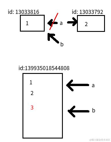 >>> id(b) # 注意两个变量的id值相同