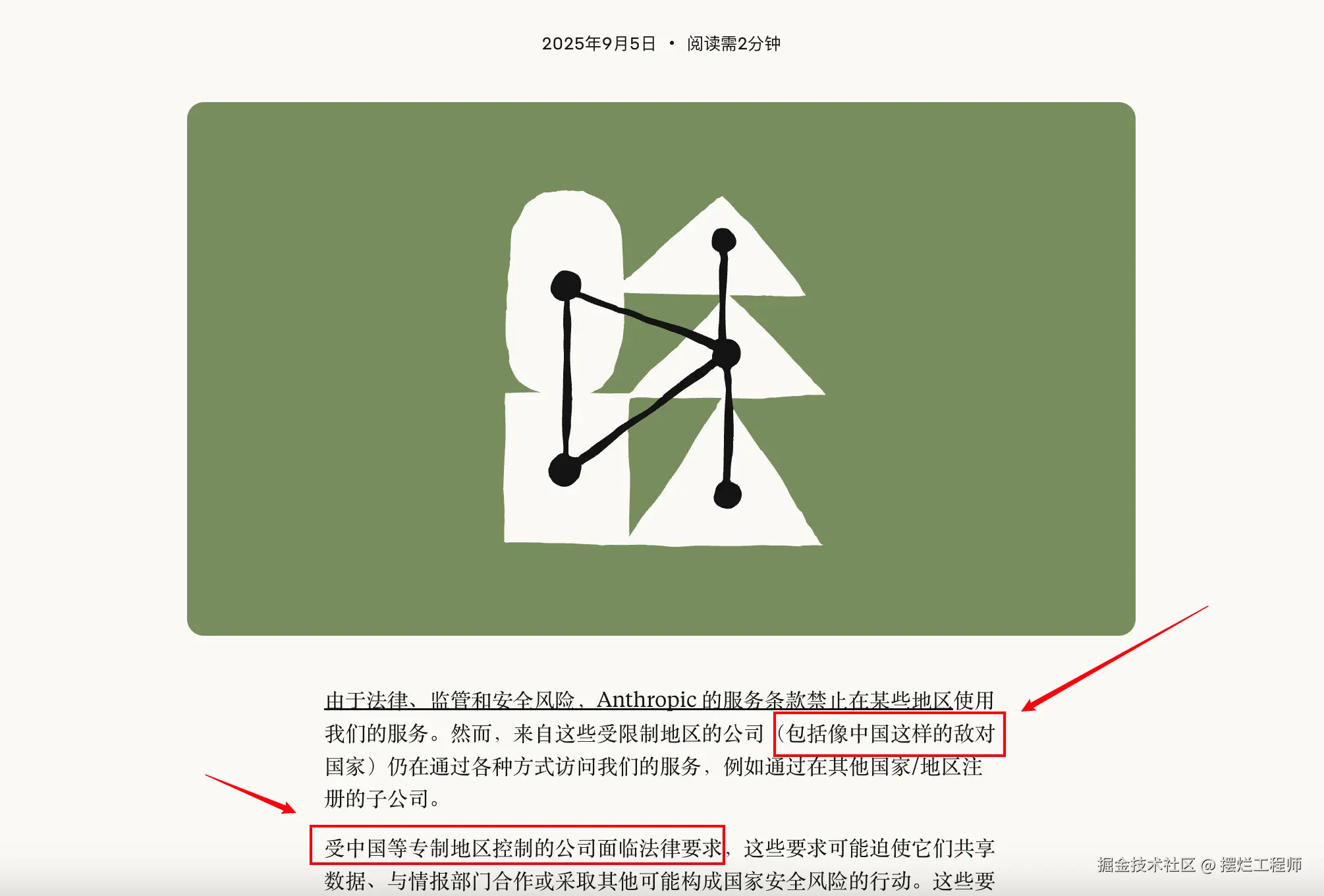 融资公告发布两天后,即 9 月 5 日,Anthropic 发布了一份全球声明,强调其服务条款禁止在某些地区使用其产品。