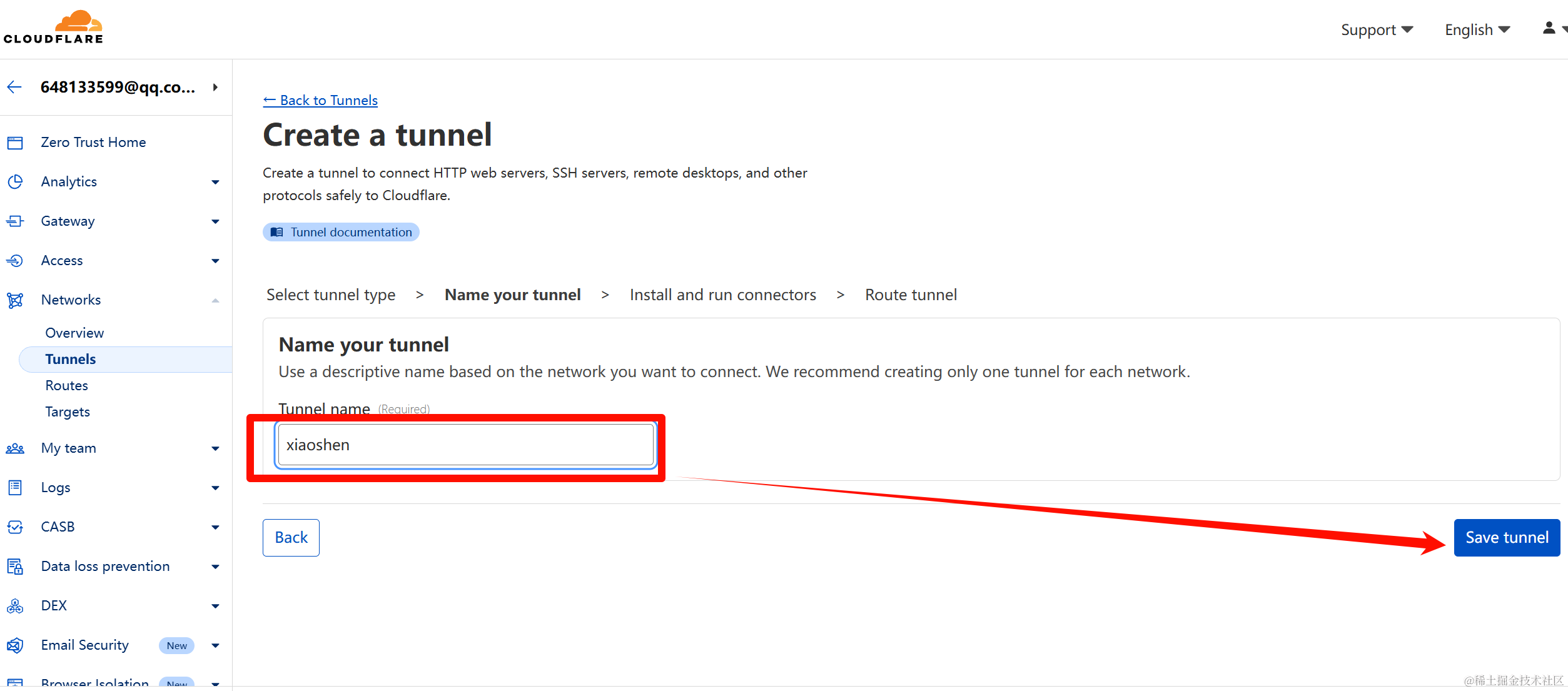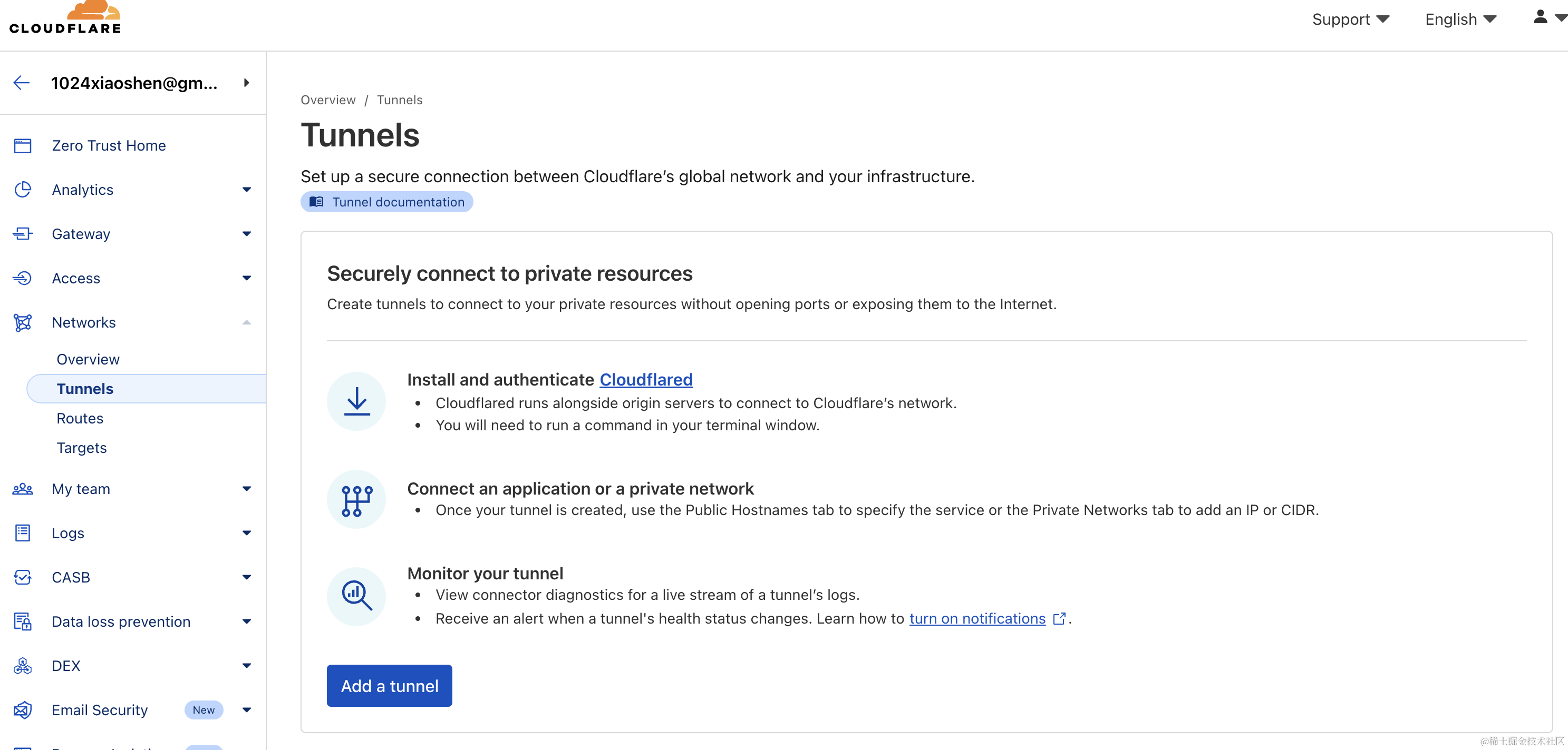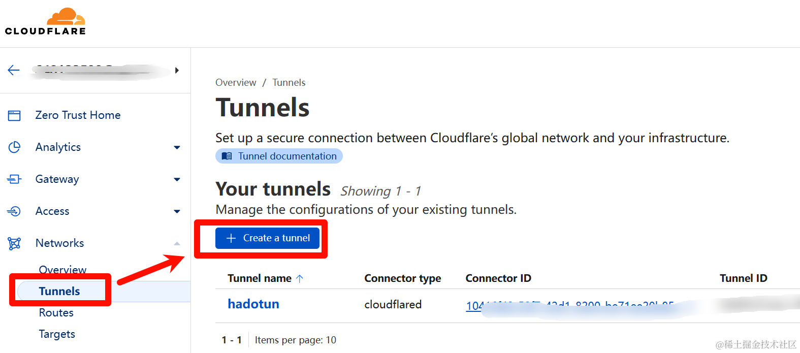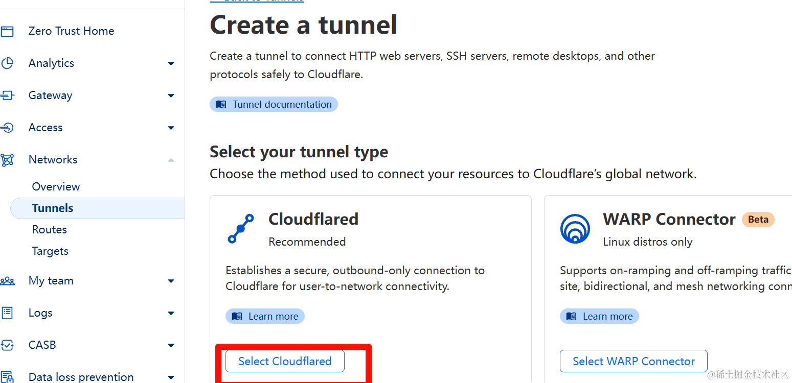 1.前往Cloudflare One(Cloudflare One)然后登录,然后依次点击网络->Tunnels->创建隧道