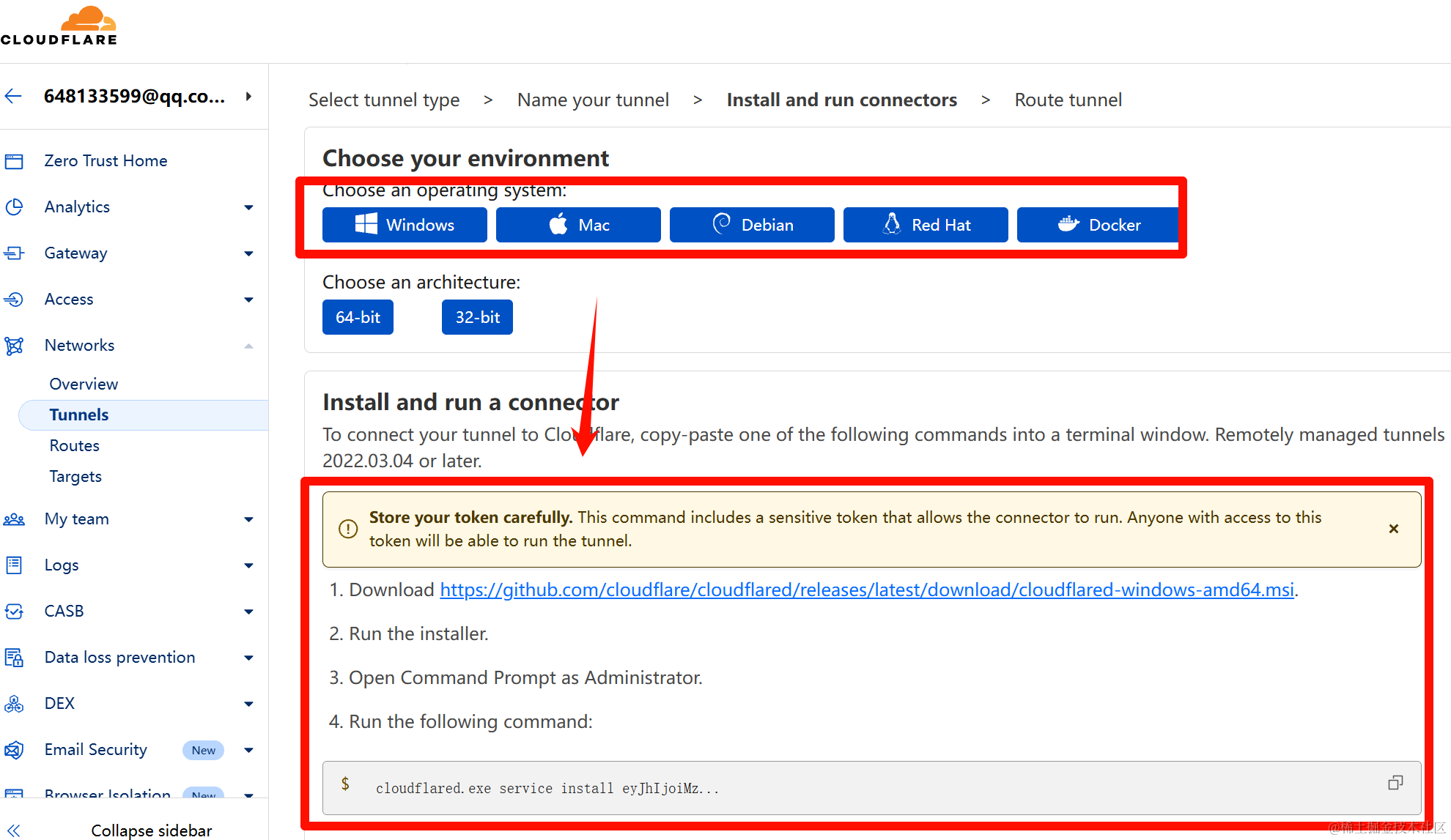 https://github.com/cloudflare/cloudflared/releases/latest/download/cloudflared-windows-amd64.msi. 下载后,运行安装程序,安装成功后,再执行下面的命令。