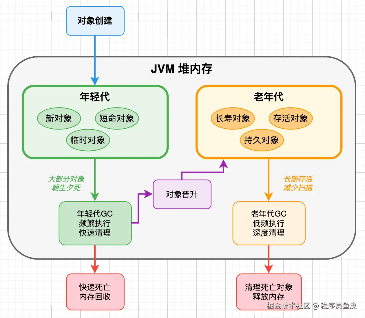 在这之前,ZGC 对所有对象一视同仁,无论是刚创建的新对象还是存活了很久的老对象,都使用同样的收集策略。这虽然保证了一致的低延迟,但在内存分配密集的应用中,效率并不是最优的。