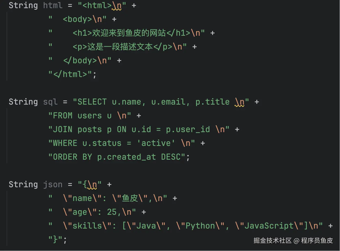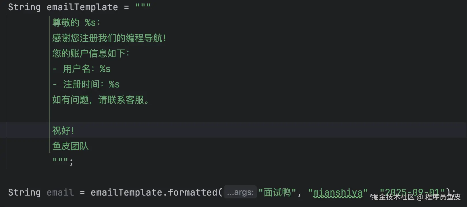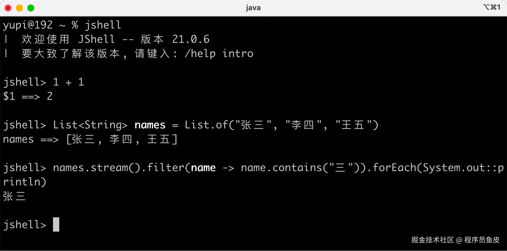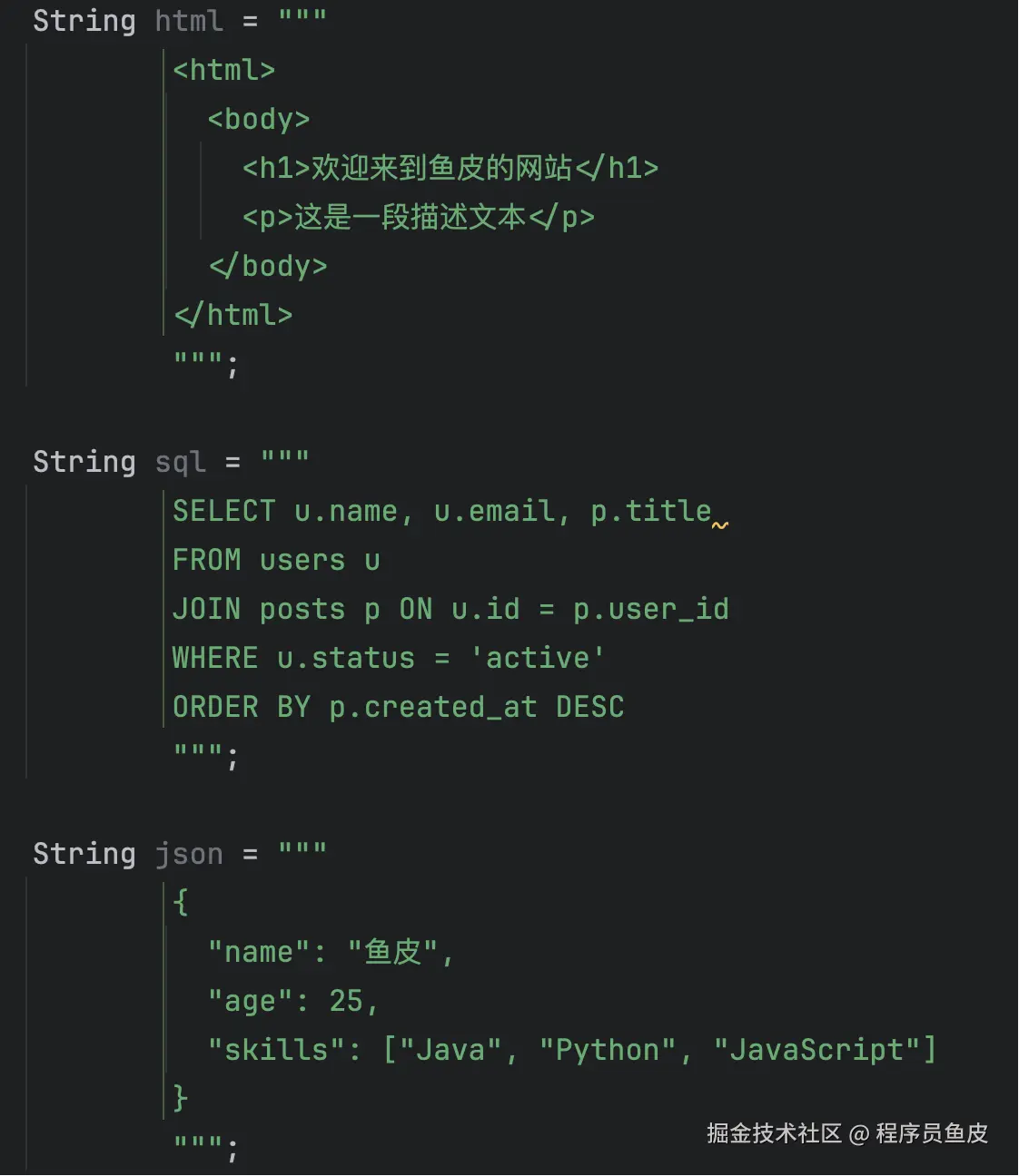 List<String> names = Arrays.asList("鱼皮", "编程导航", "面试鸭");