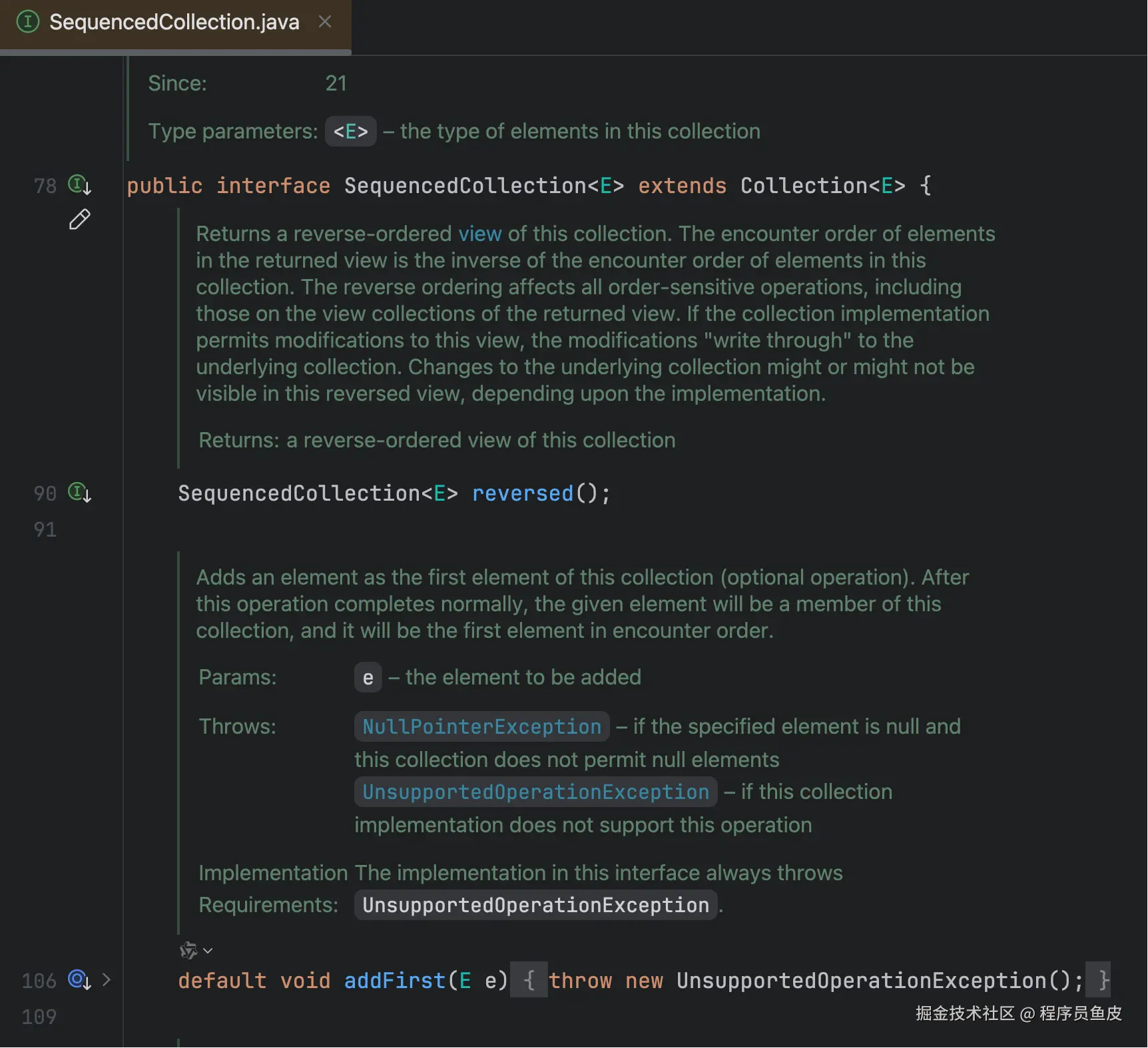 除了 List 之外,SequencedMap 接口(比如 LinkedHashMap)和 SequencedSet 接口(比如 LinkedHashSet)也新增了类似的方法。本质上都是实现了有序集合接口: