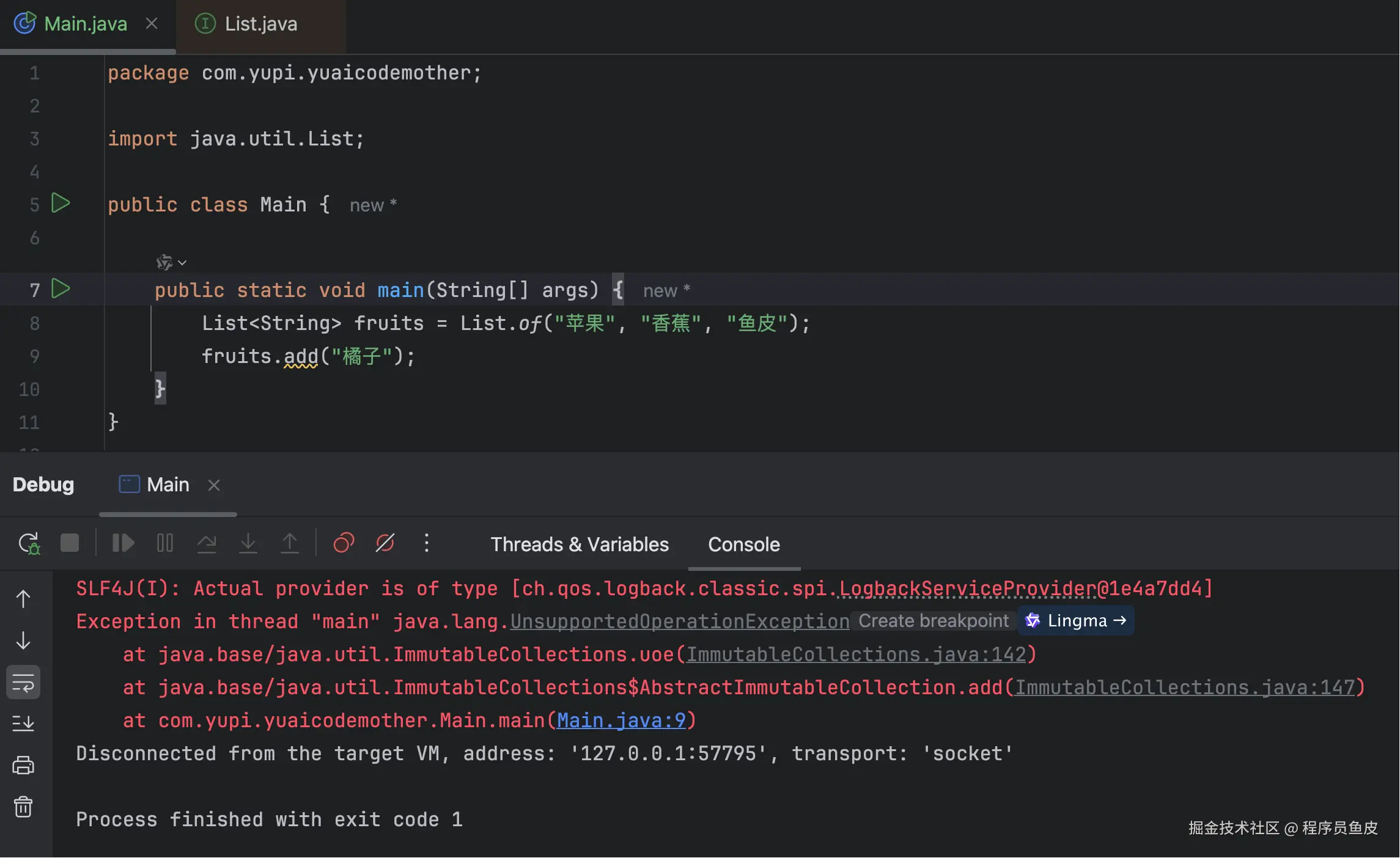 List<String> nameList = Arrays.asList("鱼皮", "编程导航", "面试鸭");