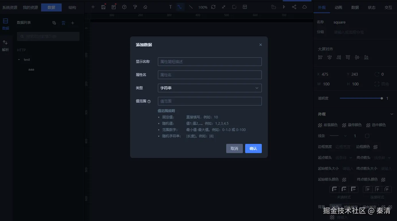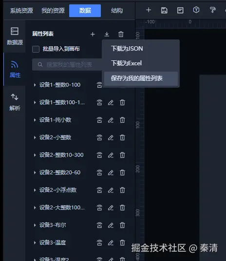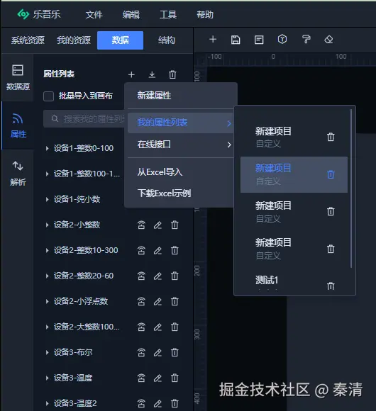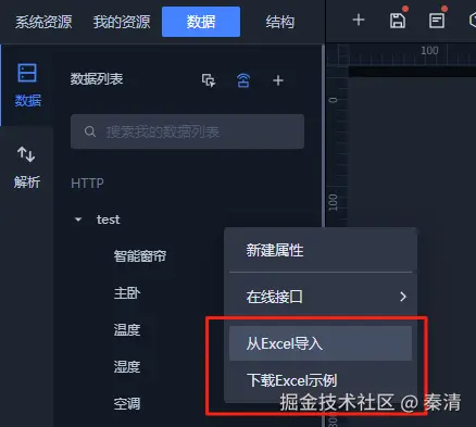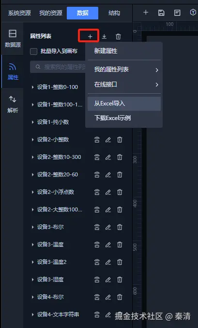 支持新增属性、在线接口和从Excel导入 三种方式导入数据源。