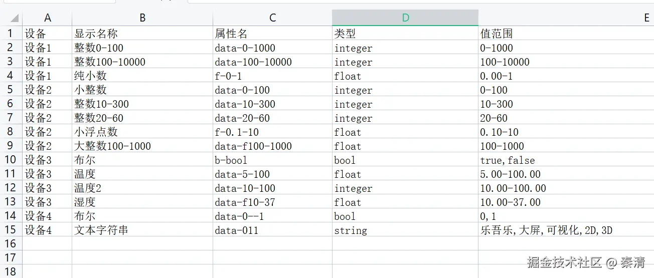 示例excel如下,显示名称和属性名必须,其他可有可无。