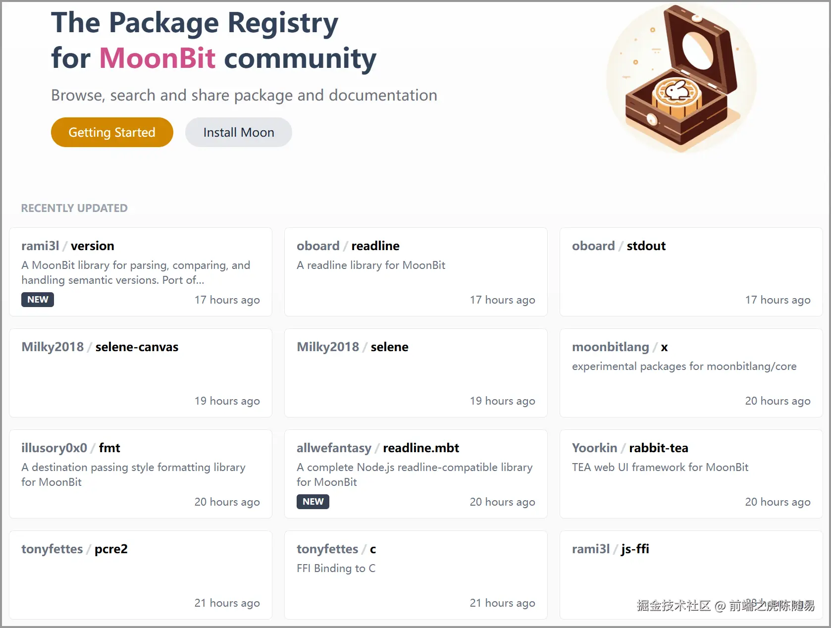 MoonBit 的中文名称叫做 月兔,每个模块称之为 月饼,放月饼的仓库就是 https://mooncakes.io。