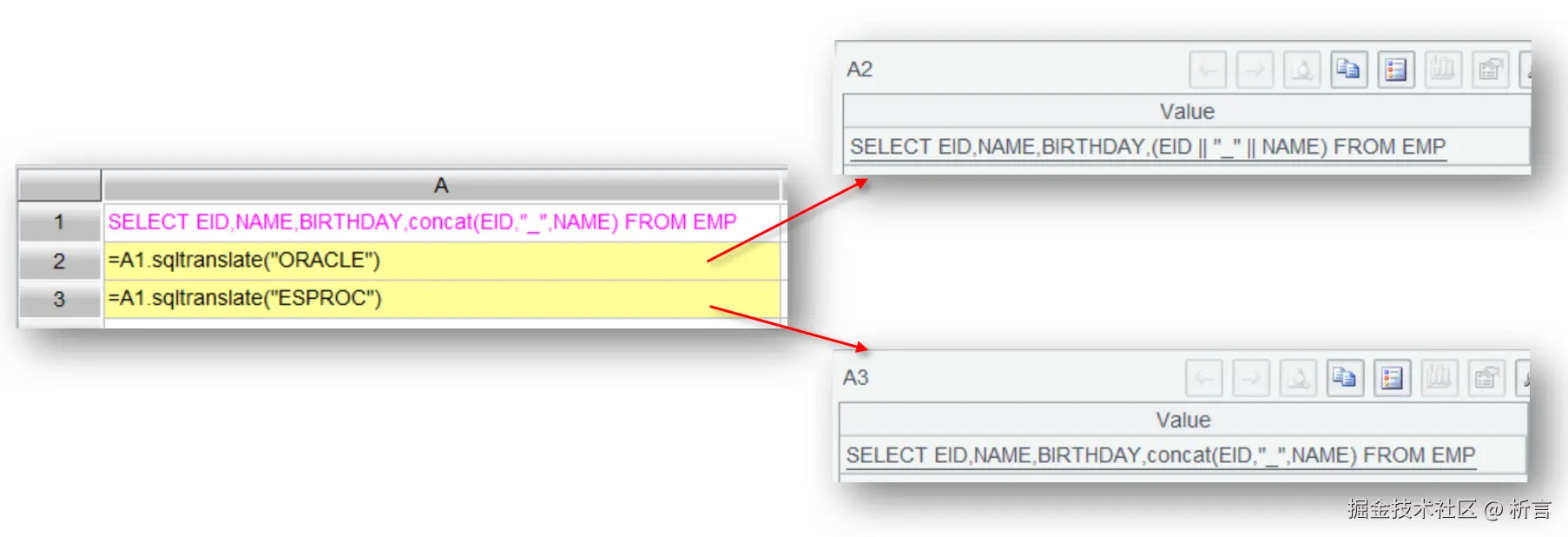 SPL 针对这个场景提供了 SQL 转换功能,可以将某种标准 SQL 转换成不同数据库对应的语句,从而完成数据库切换时 SQL 无缝移植。