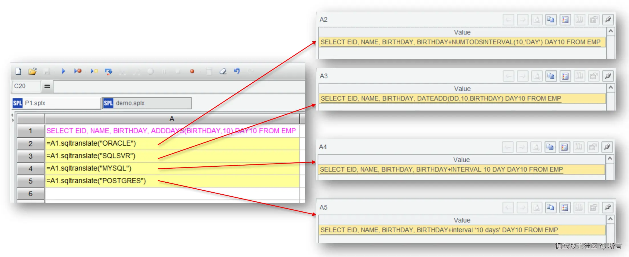 这些五花八门的差异都可以用 SPL 的 sqltranslate 来转换。