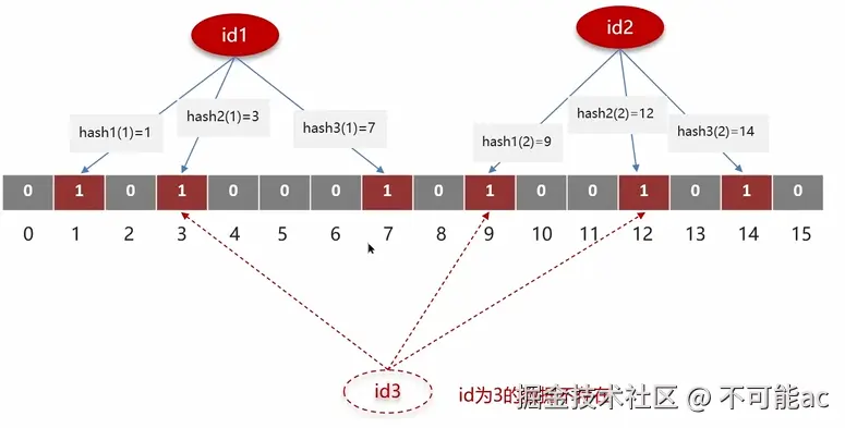 bitSet.set(f.hash(value), true); // 将哈希值对应的 bit 置为 1