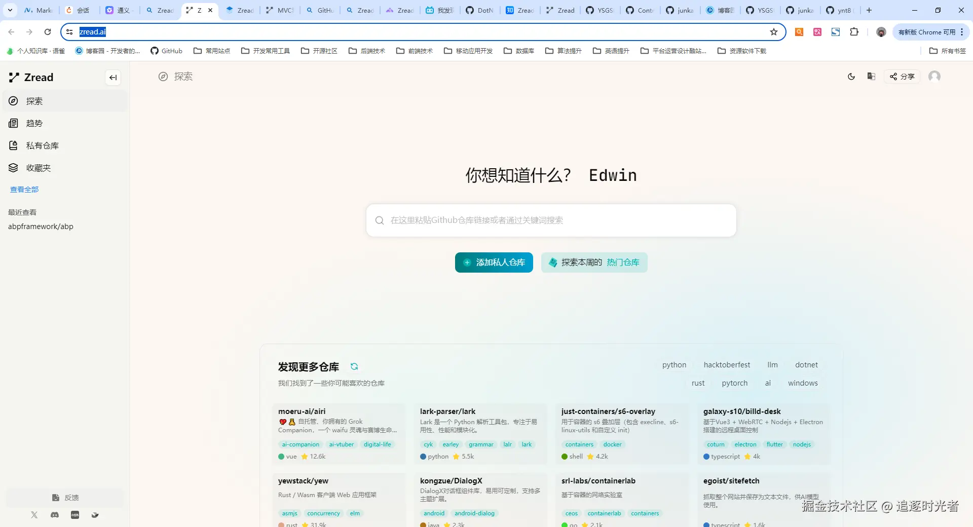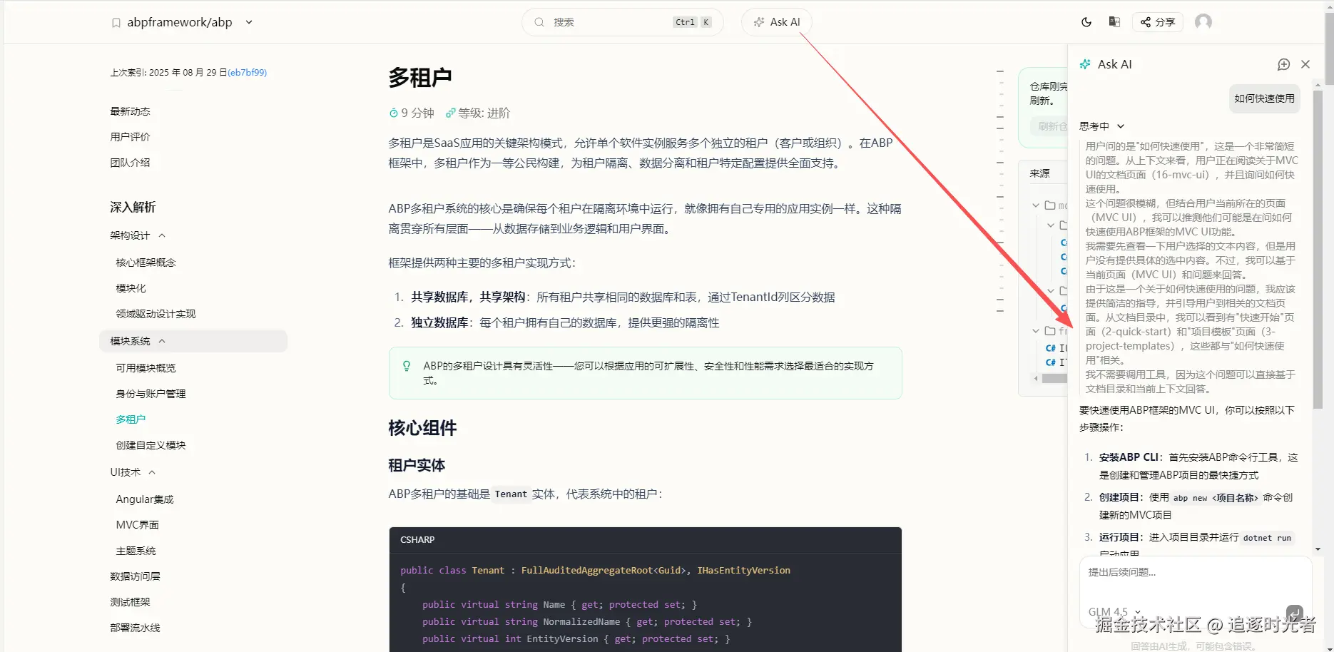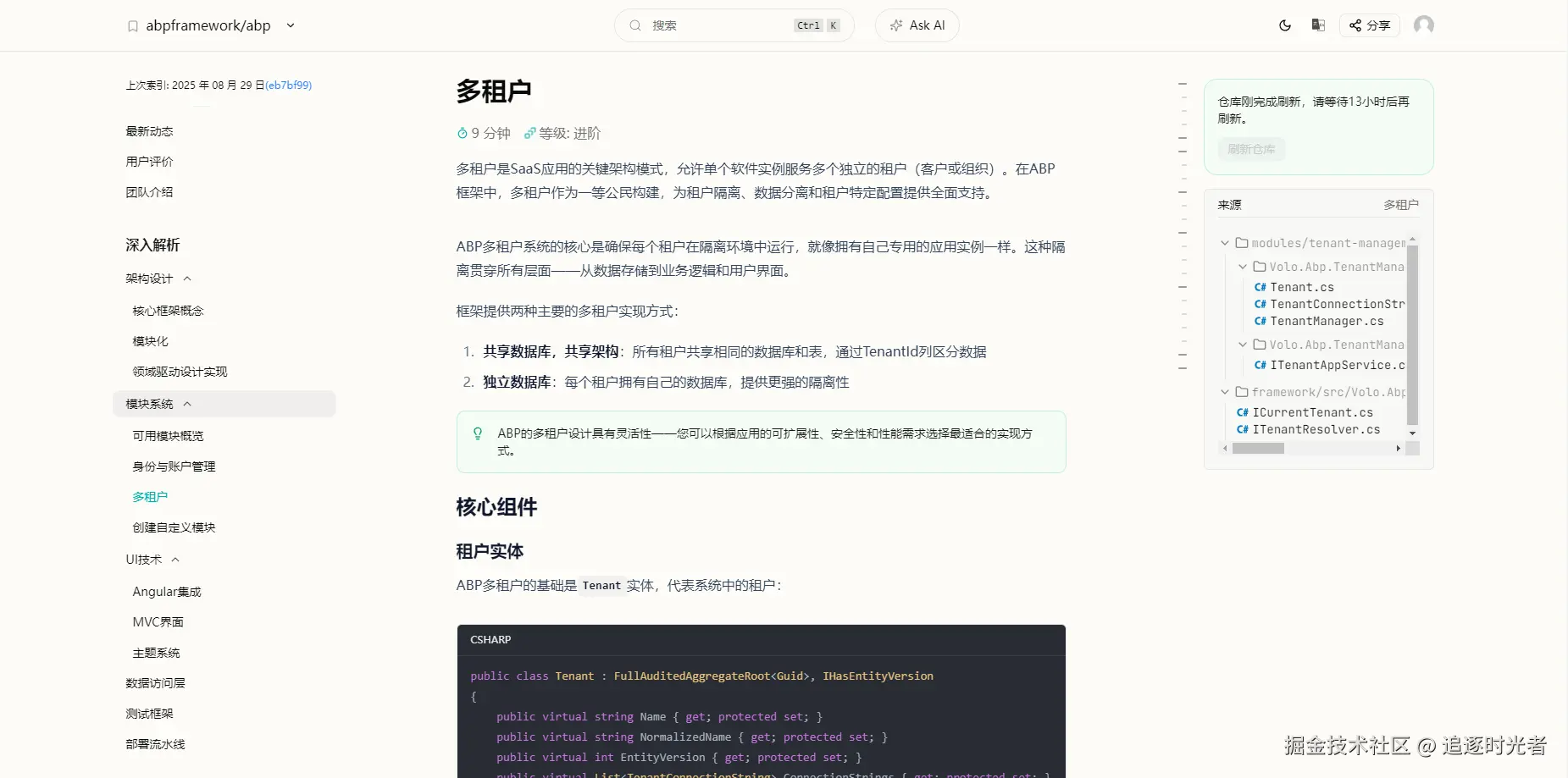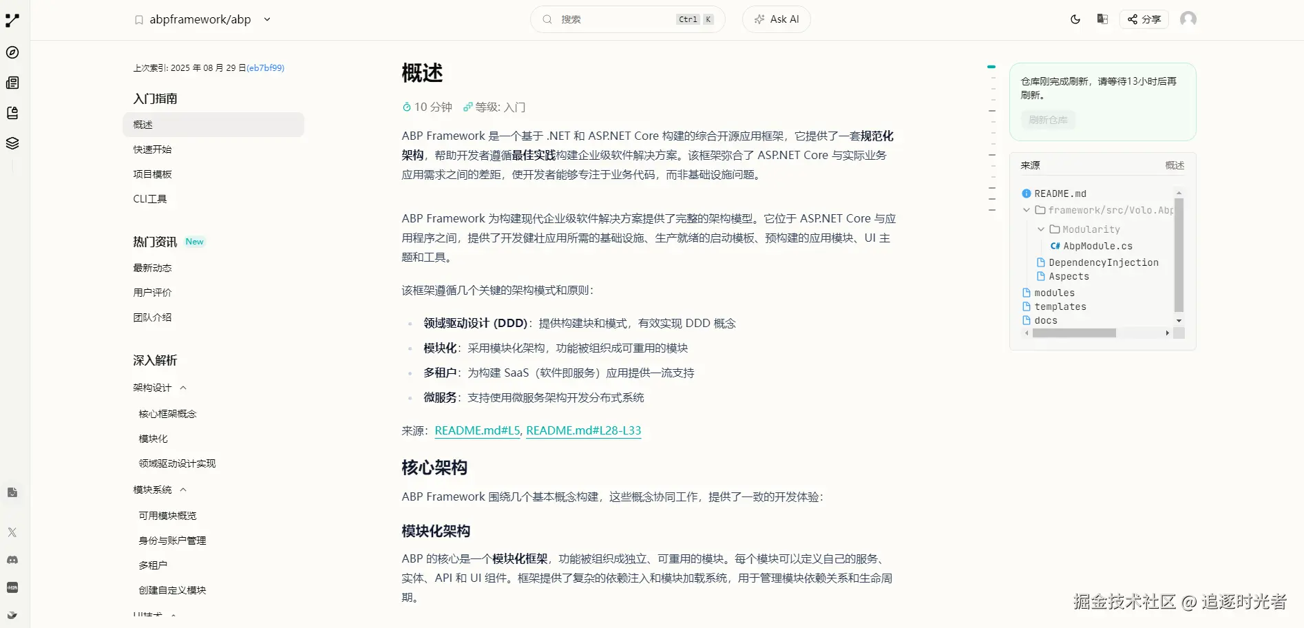 接下来我们让 Zread 来快速生成 ABP Framework 项目的中文文档,来帮助我们来快速的学习使用 ABP Framework。