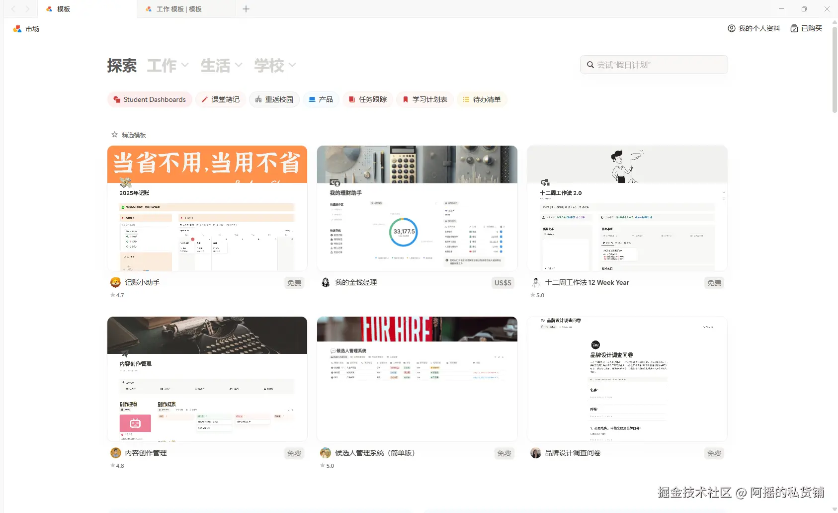 1.2 可以在市集里面看到,使用的方式很多,可以结合个人情况玩出多种花样。我简单介绍我日常的使用,还是如开头所说,把Notion作为一个个人信息的存储服务器,把自己日常生活中的"上下文",包括日记,整理的文档,项目内容,旅行计划等等放入到Notion中,再通过AI的能力将信息进行整合并根据需求输出相应的内容。我主要是使用其中的日历记录每一个天日常和思考,目前我已经记录了快一个月了。