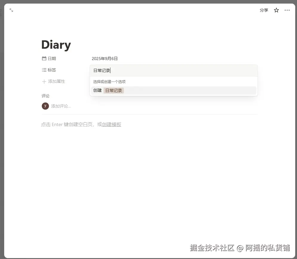 2.4 填写上每天记录的内容以及创建一个标签,如果没有可选择标签,直接输入就可以了