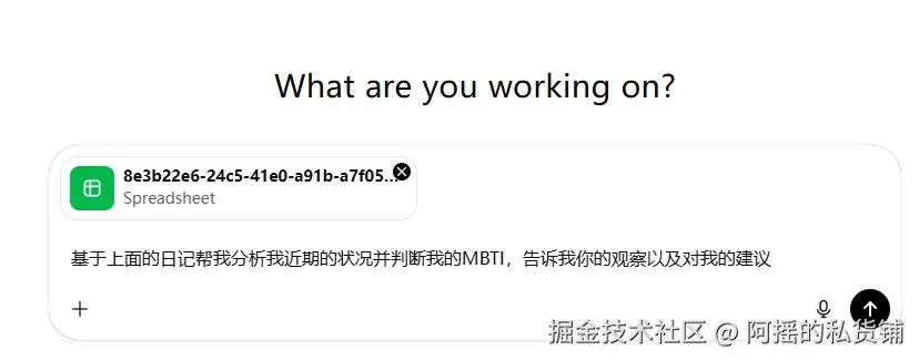 3.1 将近期的情况给到AI,让其帮你做一个分析,我这里用的是自己的日记,当然也可以用其他的内容。