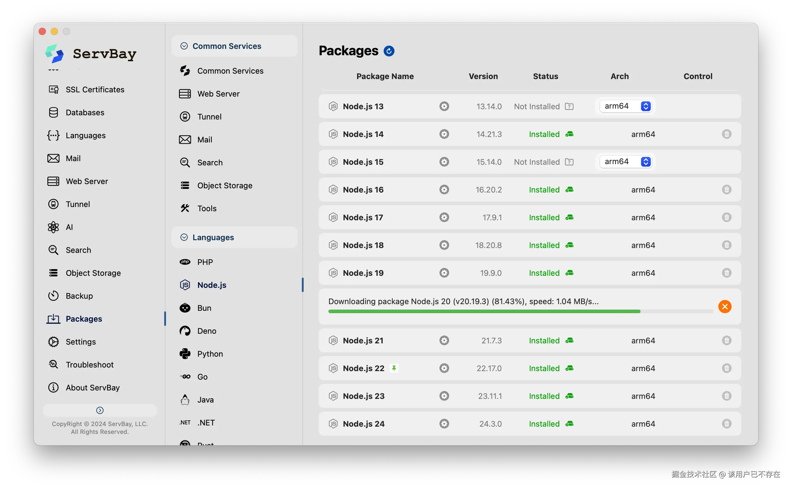 ServBay不仅是一个简单的Node.js版本管理器。它是一个内置了Web服务器、多种数据库、SSL、内网穿透乃至本地AI引擎的强大生态系统。它精准地解决了Node.js开发者面临的每一个痛点。