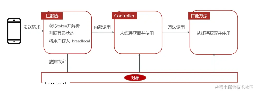 线程内调用的方法都可以从ThreadLocal中获取同一个对象。